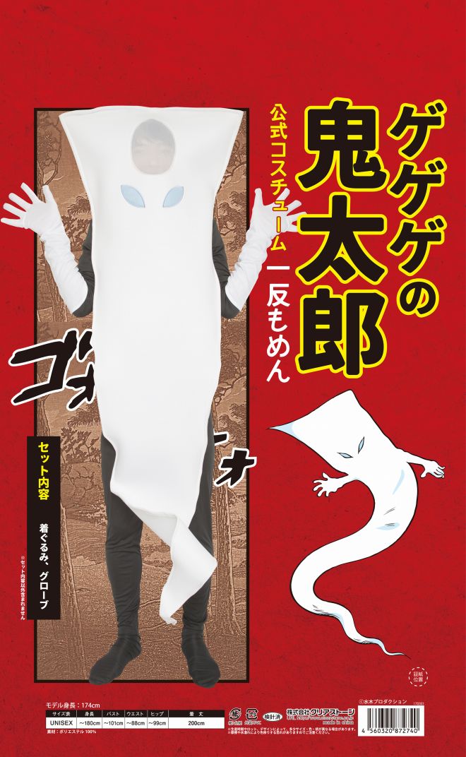 国民的妖怪漫画【ゲゲゲの鬼太郎】原作絵を忠実に再現した公式コスチュームの第二弾が発売!長ぁ〜い一反もめんは、ワイヤー入りなので足元を好きな形にアレンジできるよ☆